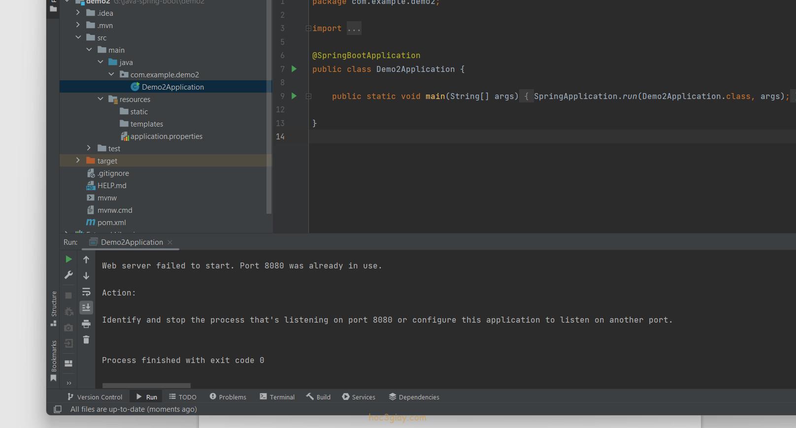 Sửa lỗi web server failed to start. Port 8080 was already in use