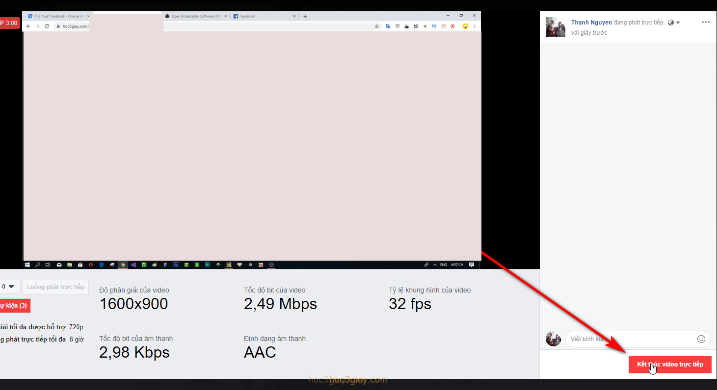 Đấy là những lưu ý quan trọng mà mình muốn gửi đến bạn. Nếu bạn không hiều chỗ nào trong bài hướng dẫn quay trực tiếp facebook trên máy tính. Bạn hãy để lại bên dưới bài viết này nhé. Cuối cùng chúc các bạn thực hiện thành công và hẹn gặp lại ở những bài viết kế tiếp trên website hoc3giay.com.