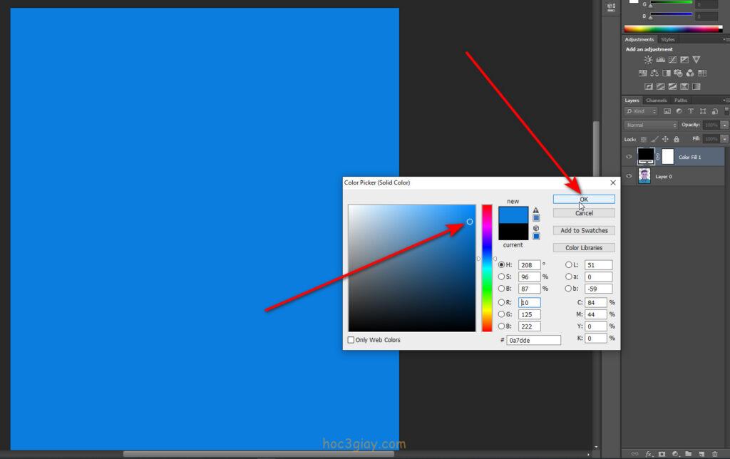 Bước 10: Trên Bảng Color Picker (Solid Color) bạn hãy chọn màu mong muốn. Sau đó nhấn Ok để thiết lập.