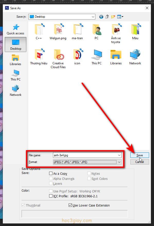 Bước 24: Nhấn Ctrl + S. Trong bảng Save As, lựa chọn nơi lưu bức ảnh và bạn chọn cái Fomat (định dạng) là JPEG (*.JPG,*.JPEG,*.JPE). Nhấn Save.