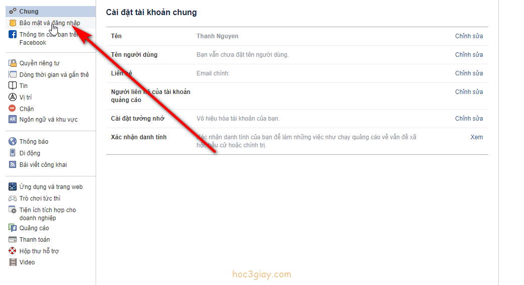 Bước 2: Bạn vào mục bảo mật và đăng nhập.