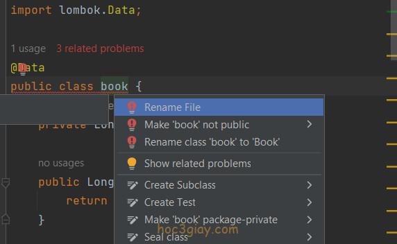 Khắc phục lỗi Class ‘book’ is public, should be declared in a file named…