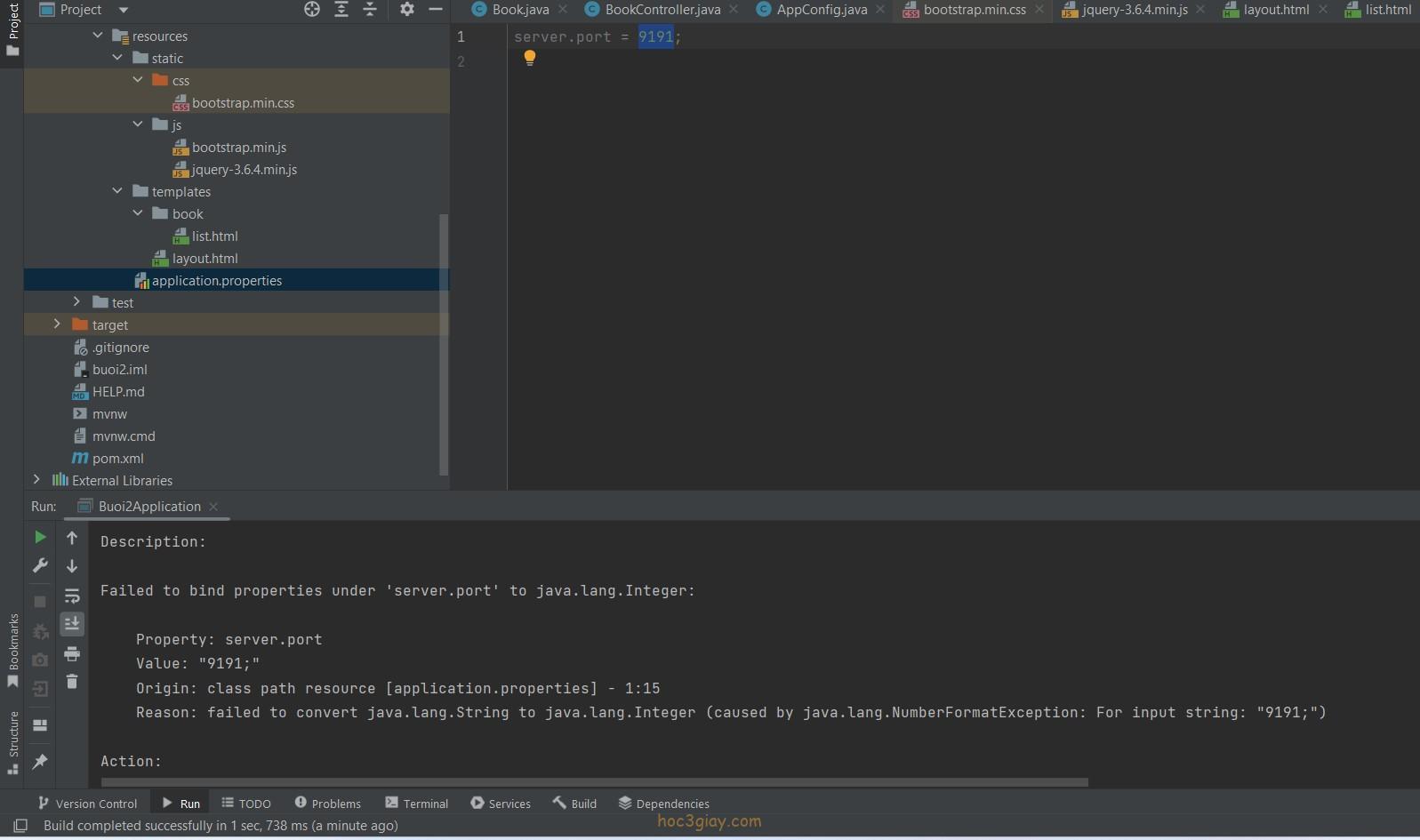 Khắc phục lỗi Failed to bind properties under ‘server.port’ to java.lang.Integer