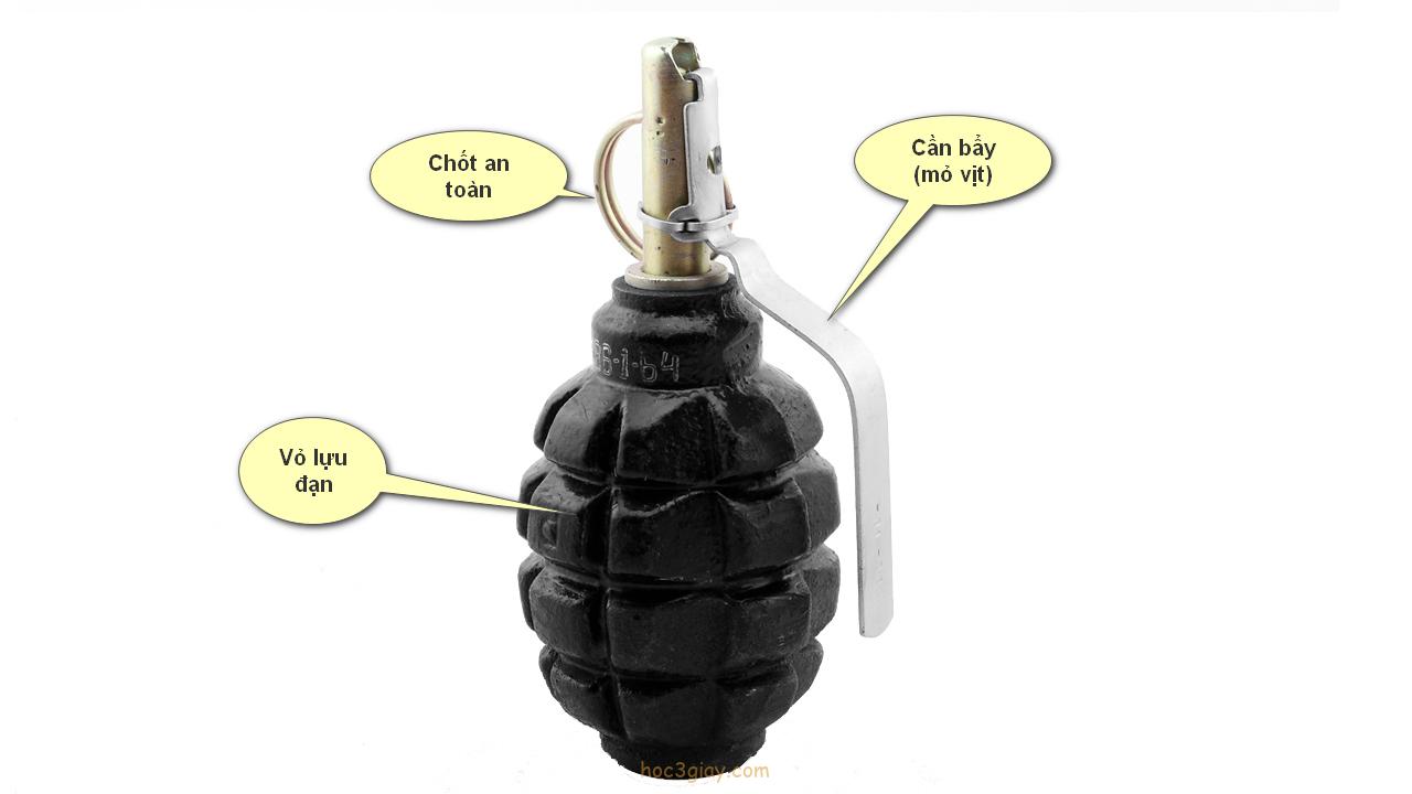 Bây giờ hãy cùng mình đi đến cấu tạo của lựu đạn bên dưới đây nhé.