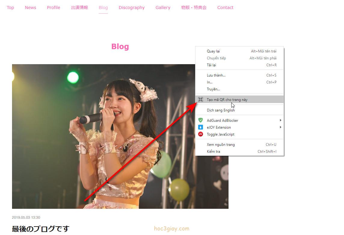 Bước 1: Mở trình duyệt Chrome lên, trên đó bạn vào địa chỉ website mình cần tạo mã QR.