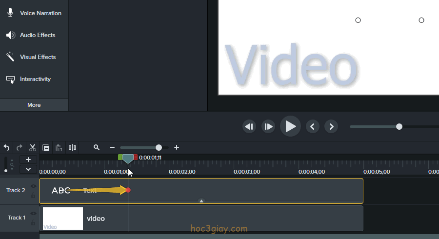 Bước 6: Bạn di chuyển đoạn text trên video, qua phía bên ngược lại đã đặt đoạn text của bên trên khung quan sát video trong camtasia.