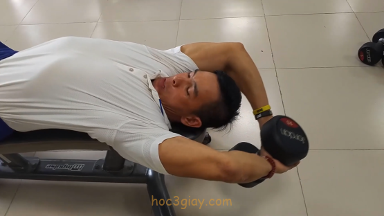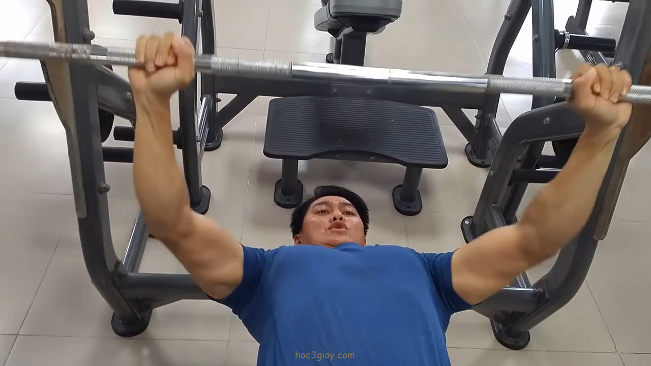 Người tập khi đẩy ta lên trên rồi thì bạn hãy thở ra và tạ xuống thì hít vào để mà có sức đẩy lên.