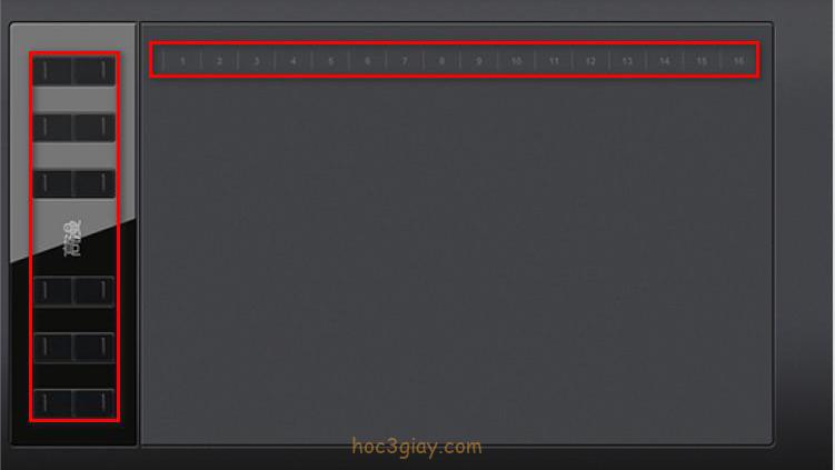 Bạn có biết ngoài 12 nút bấm nằm phía bên trái của bảng vẽ Gaomon 1060PRO thì trên bảng vẽ còn có 16 cái nút nằm phía trên không. Bình thường lúc chúng ta nhìn vào thì rất khó để nghĩ rằng những con số được đánh dấu từ 1 – 16 là những chiếc nút cảm ứng kể cả mình. Lúc đấy mình còn nghĩ nó là những con số dùng làm thước cho bảng vẻ cơ hehe.