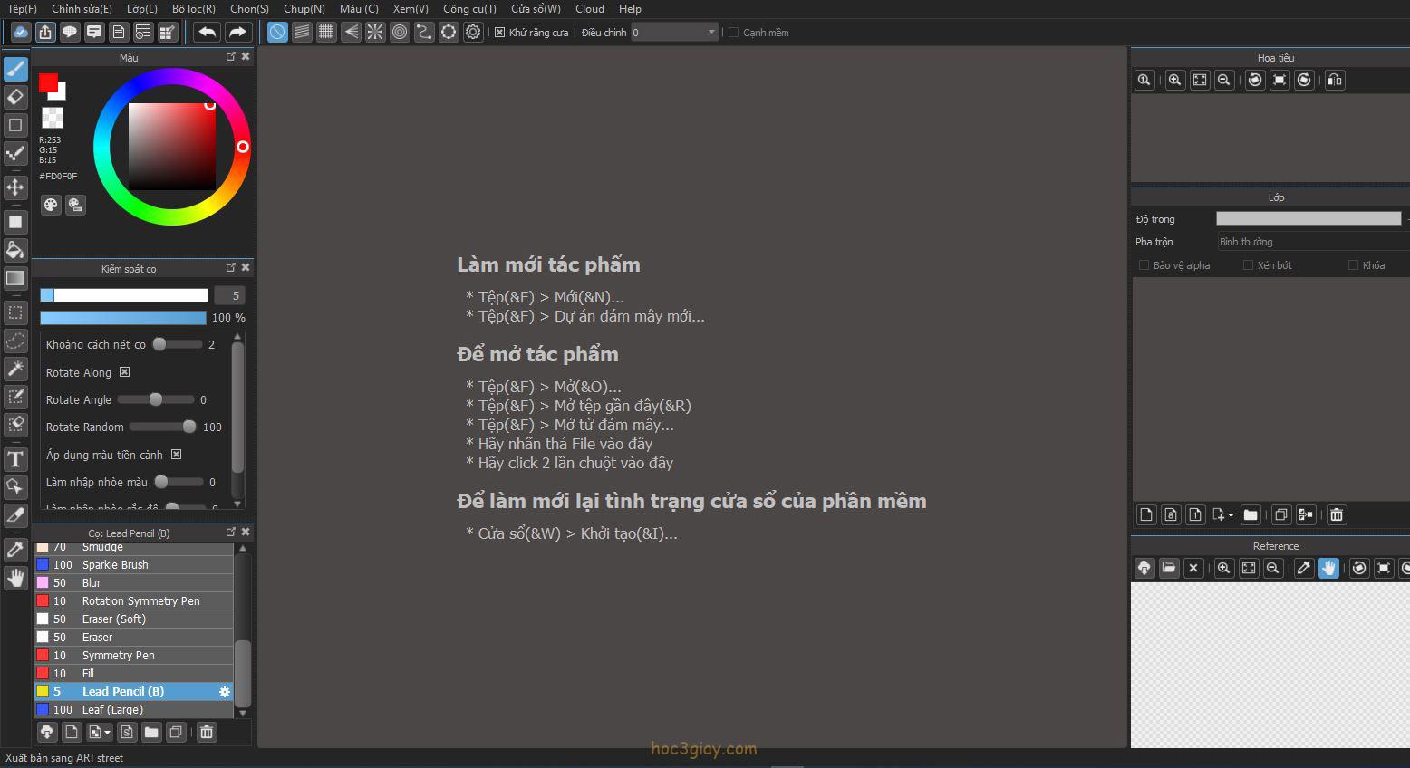 Bảng dùng để đưa một bức ảnh mẫu vào. Rồi làm mình họa cho việc bạn sẽ vẽ gì trên khung vẽ của bạn. Thường thì để bật được bảng này bạn sẽ vào menu Window > chọn Reference.
